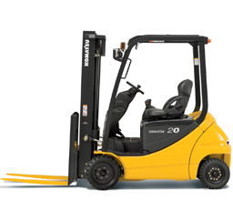 - Total AC system (on AE/AM series) with twin drive motors and electronically controlled motor for lift/steer operations